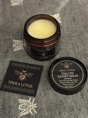 Nuestro bálsamo combina sebo de res alimentada con pasto, miel cruda y aceite de oliva para ofrecer una hidratación profunda, natural y libre de químicos. Es un tratamiento completo para restaurar la vitalidad y el brillo de tu piel.