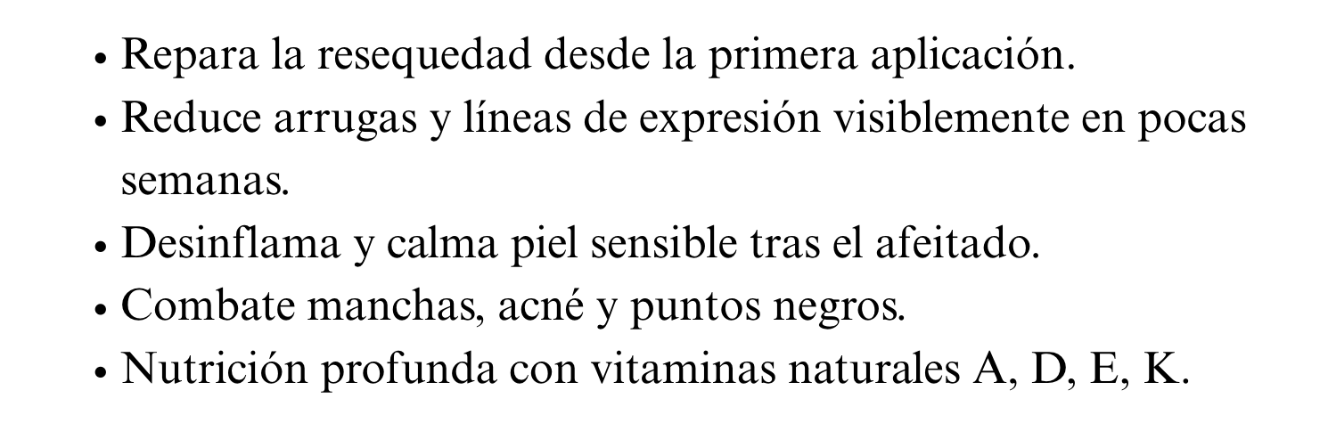 Es ideal para todo tipo de piel, especialmente seca o sensible. También ayuda a calmar irritaciones y enrojecimientos.