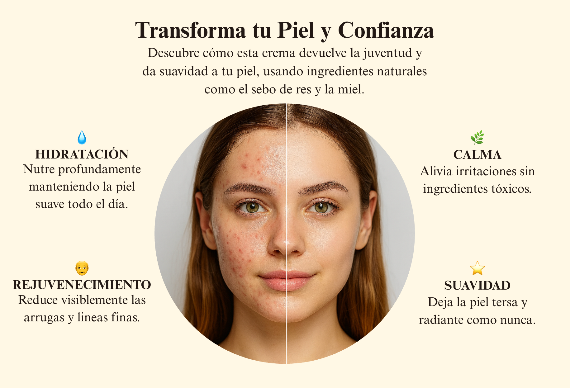 A diferencia de otros, nuestra crema ofrece una hidratación duradera, reducción visible de arrugas y una fórmula sin tóxicos que protege la piel sensible.